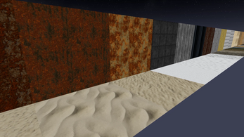 Asphalt (8), Bricks (18), Carpet (6), Caustics (1 + 1 SubUV), Ceiling (3), Chipboard (1), Cliff (5), Coal (1), Concrete (16), Crate (4), Drywall (2), Fence (11), Grass (9), Grate (1), Gravel (1), Ground (20), Ice (3), Lava (1 + 1 SubUV), Linoleum (3), Metal (22), Mud (3), Padding (2), Pebbles (1), Plaster (8), Rocks (6), Roof (18), Sand (4), Snow (4), Stones (8), Tiles (23), Train Tracks (1), Vent Cover (1), Vent Shaft (1), Wallpaper (6), Water (1 + 1 SubUV), Wood (27).